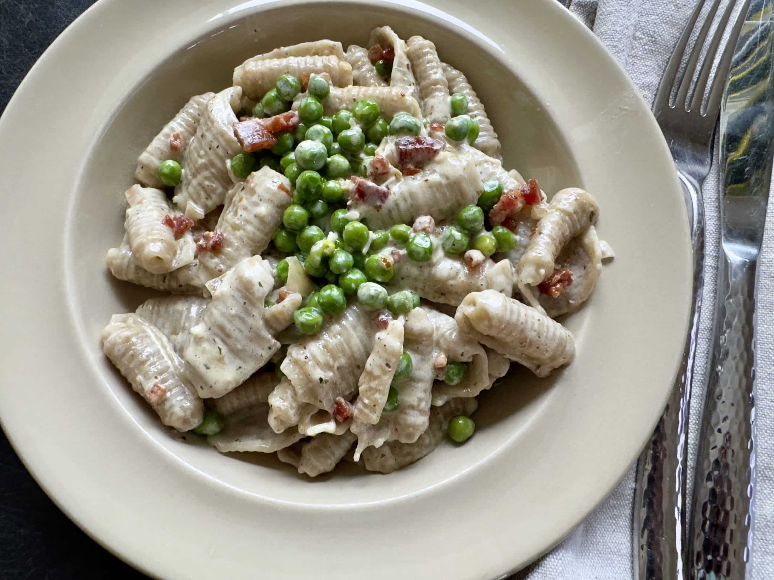 Creamy Trader Joe’s Black Pepper Barilotti with Pancetta and Peas