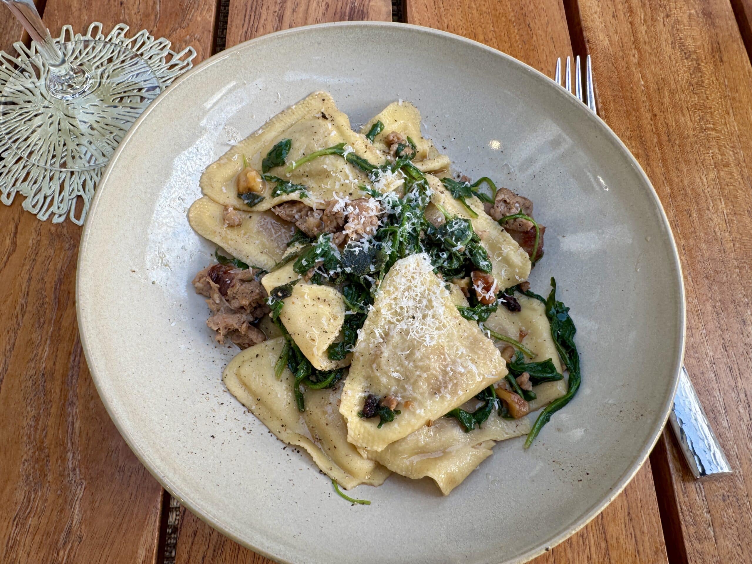 - Sweet + Savory Balance: Butternut squash ravioli leans sweet. Pairing it with savory chicken sausage, nutty brown butter, and peppery arugula balances things out so it’s not dessert pasta.