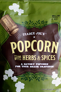 I saw this in the “new” section today and ran over jumping up and down screaming! Actually, I just grabbed a bag and stuck it in my cart quietly… but I really like these adult popcorns I’ve been seeing the past couple of years. The first I had was popcorn with truffle salt and that is super great. I’ve heard of people putting herbs and stuff on their popcorn but hadn’t tried any. I like the way that Trader’s takes something normal like popcorn and then transforms it into an adult product!