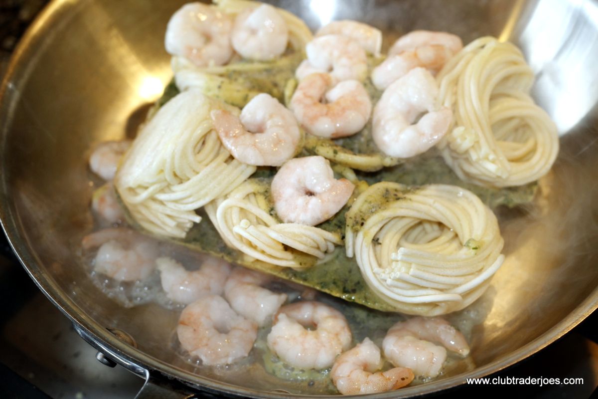 Toss pasta in the pan with shrimp