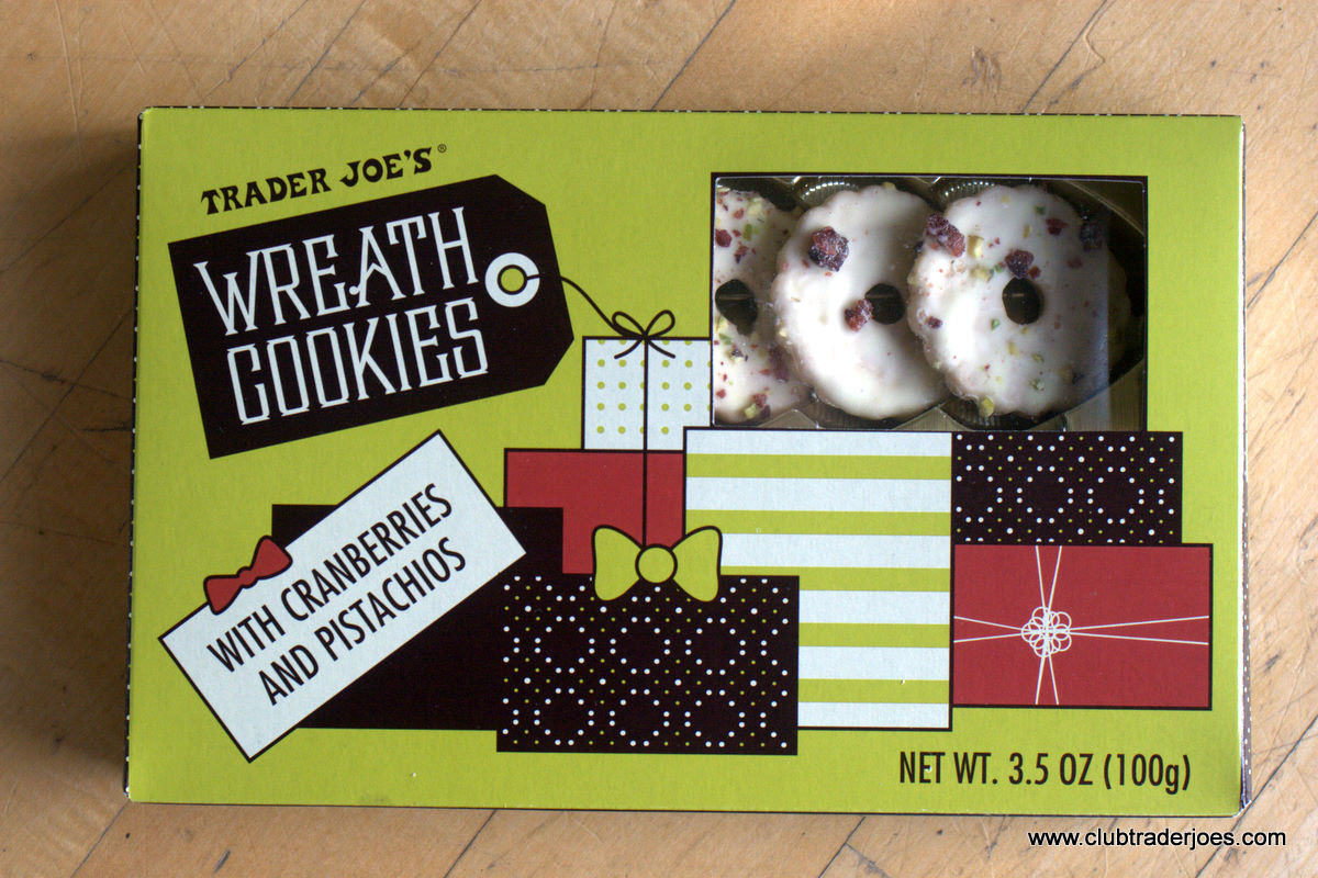 I wasn’t quite sure what to make of these when I first saw them on the self. It wasn’t the usual Trader Joe’s packaging, but I like the retro style and it looks very much like a gift which I’m sure was the intent here. It looks so nice, I’ll buy boxes of it and give them as gifts and you can’t go wrong for $2.49 for these Trader Joe’s Wreath Cookies.